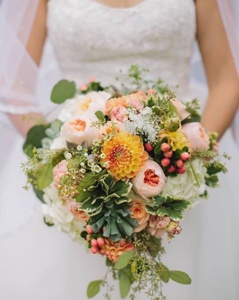 Bouquets keep getting bigger and bigger! Cascading bouquets with mixed florals, greens and even succulents continue to grow in popularity.