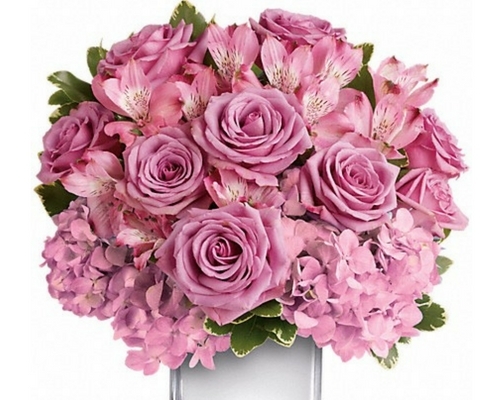 “Pink roses traditionally symbolize love and gratitude. Show your love for a breast cancer survivor or show support, with our pink-ribbon inspired arrangements,” says Debbie Perdue, English Gardens Floral Coordinator.