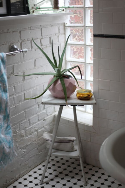 Low light and high humidity make the bathroom the perfect spot for a FERN. In nature, these plants grow in filtered light (underneath the canopy of a tropical forest)! This environment is very similar to that of a bathroom. Place this plant in the corner to add some lush and low-maintenance décor. The bright green color really brightens up a bland and boring space.