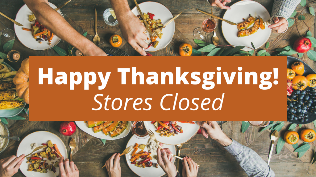 Our stores are closed today. Happy Thanksgiving!