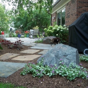 When it comes to boulders, English Gardens carries the best quality. These are blue-green shot rock from the south side of Lake Superior in a cropping that was strong enough to withstand the Glaciers. They’re similar to those found in the Pictured Rocks National Parks and along the shoreline. The huge sections of rock are dynamited into smaller irregular-shaped boulders that knit together to form a tight-fitting retaining wall. The boulders are “freshly” exposed to weather and air, so their color is bright and bold; unlike others that have been exposed to the elements for hundreds of years.