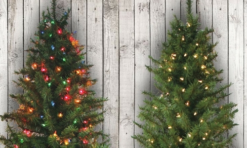 Life-like trees with incandescent lighting feature English Gardens Premier Collection lights. Bulbs can last up to 3,000 hours, approximately 50% longer than standard incandescent light sets, and they are 47% brighter.