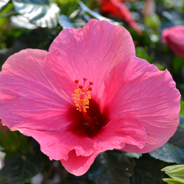 With colorful blooms that blossom all season long, a hibiscus plant is a very full and lush plant to choose for your outdoor living area. Exotic multi-colored flowers, variations of pink and tri-colored bushes are some of the varieties available at English Gardens.