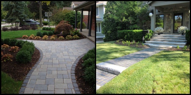 Complementing pavers are often used on the same walkway to make borders or accents to match the colors on your house, to seamlessly blend into your yard.
