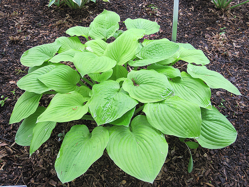 August Moon Hosta features dainty spikes of white bell-shaped flowers rising above the foliage in mid-summer. Its attractive textured heart-shaped leaves remain yellow in color throughout the season.