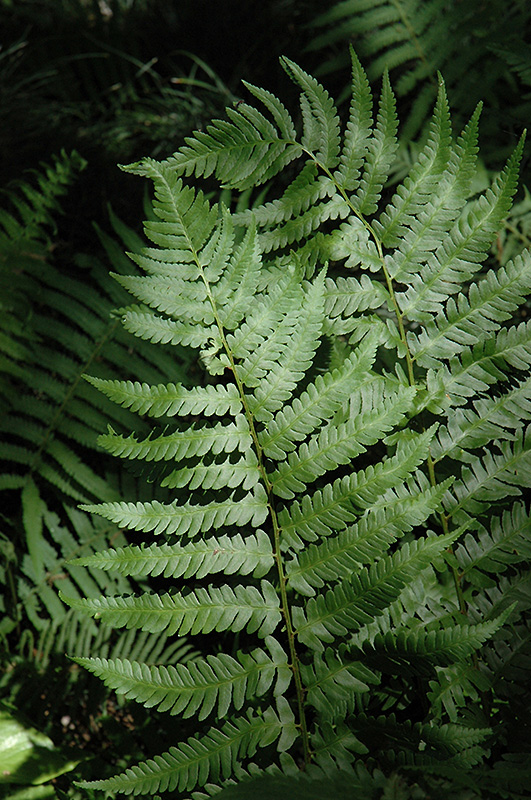 This tall fern is a great vertical accent; has graceful, arching fronds; keep evenly moist, provides habitat and shelter for birds and bees.