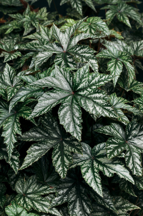 Pegasus Begonia has thick, deep-green leaves with silver overlays. This upright foliage variety is stunning on its own, or as the thriller in a combination container. Combine with other shade lovers for a spot under a tree, or the darker corner of your deck. Will reach 16″ in height with a spread of 18″. Best in part to full shade.