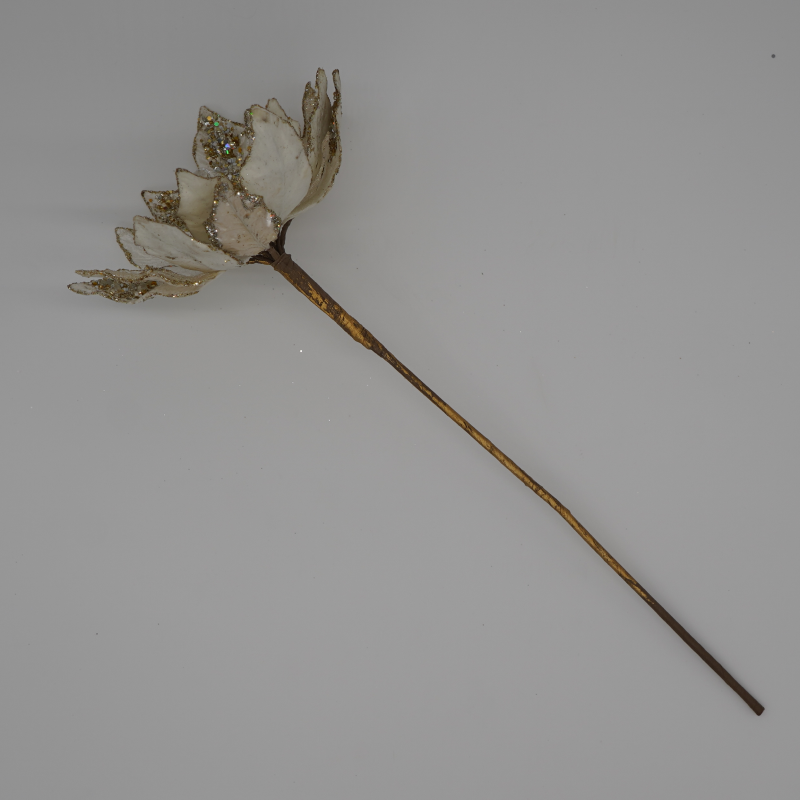 For an elegant addition to your holiday decor, this ivory and gold poinsettia stem will be perfect.