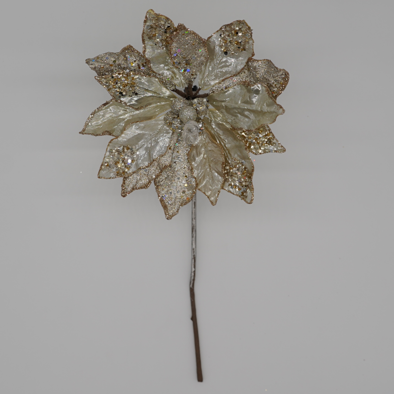 This platinum glitter poinsettia has Christmas written all over it and sparkles on its own.