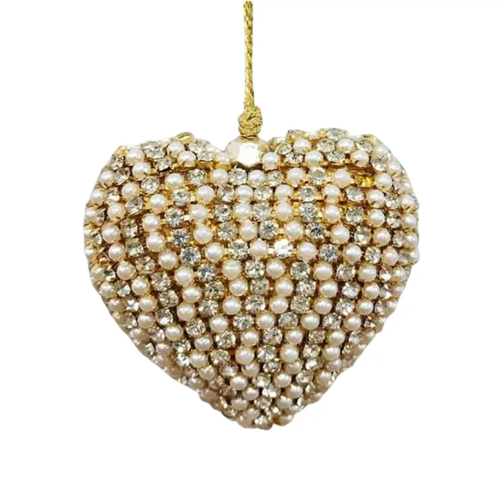 Rhinestone and Pearl Heart Ornament 6cm