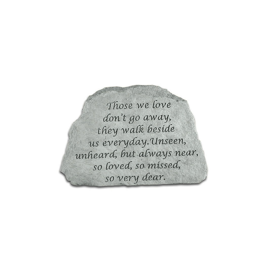 Remember those people who left a special mark on your life with this 6-inch memorial stone. Reads: “Those we love don’t go away, they walk beside us everyday. Unseen, unheard, but always near, so loved, so miss, so very dear.”
