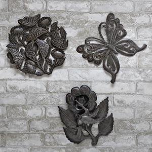Metal art handcrafted by Haitian artists using recycled materials. A great conversation piece.